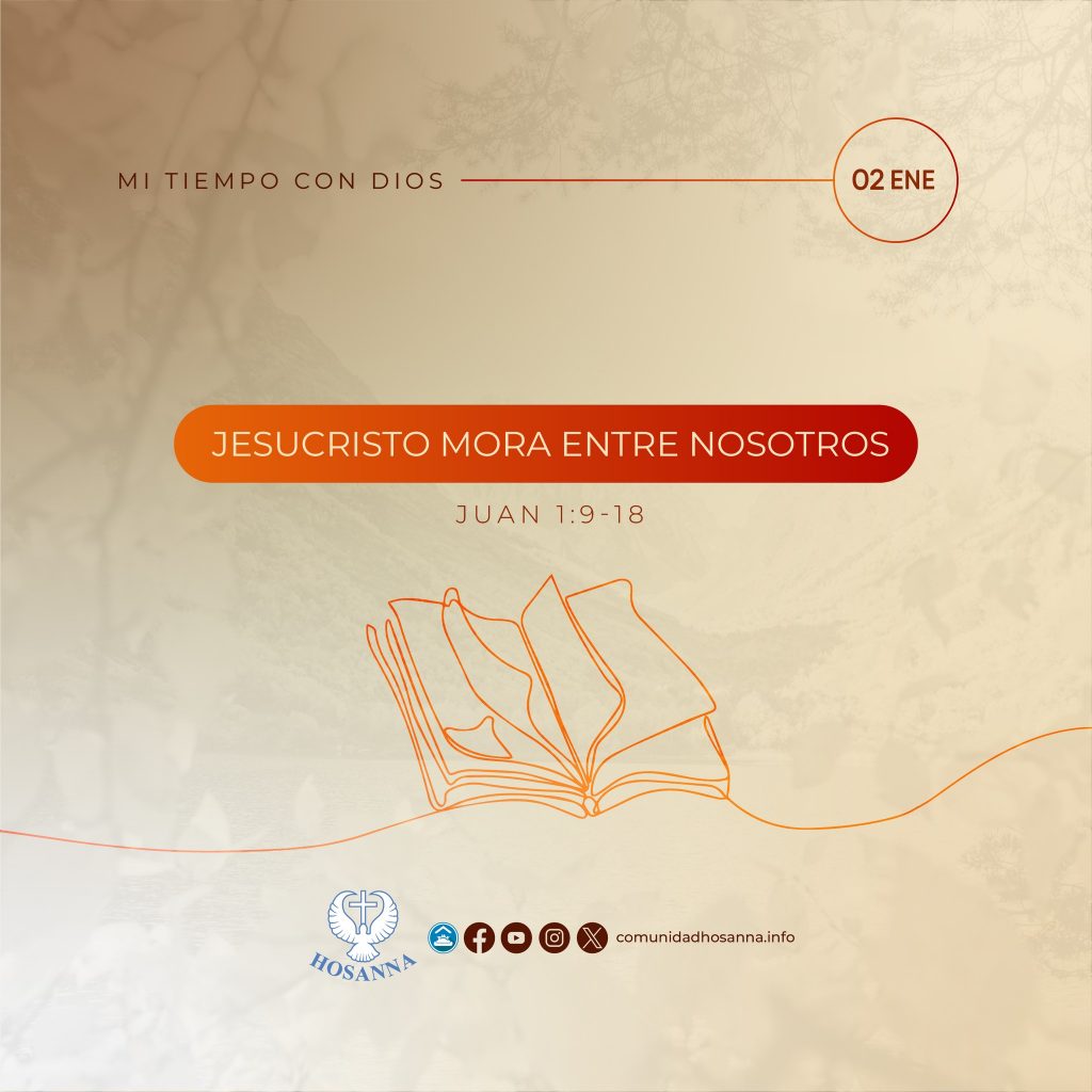 Hoy en mi Tiempo con Dios, leemos el pasaje de Salmos Juan 1:9-18, donde hablamos de «Jesucristo mora entre nosotros».